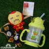 Creative summer sipper for loving little brother with soft toy keychain rakhi inclusive of tilak-chandan-chawal-mishri and delicious chocolate treat