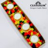 A box of four designer candle platters filled with tea lights for long-duration burning. Blend of beautiful making & festive colors to make Diwali special.